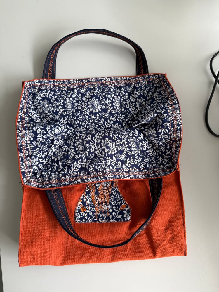 Outer: cotton duck with machine embroidered cotton applique (both sides)